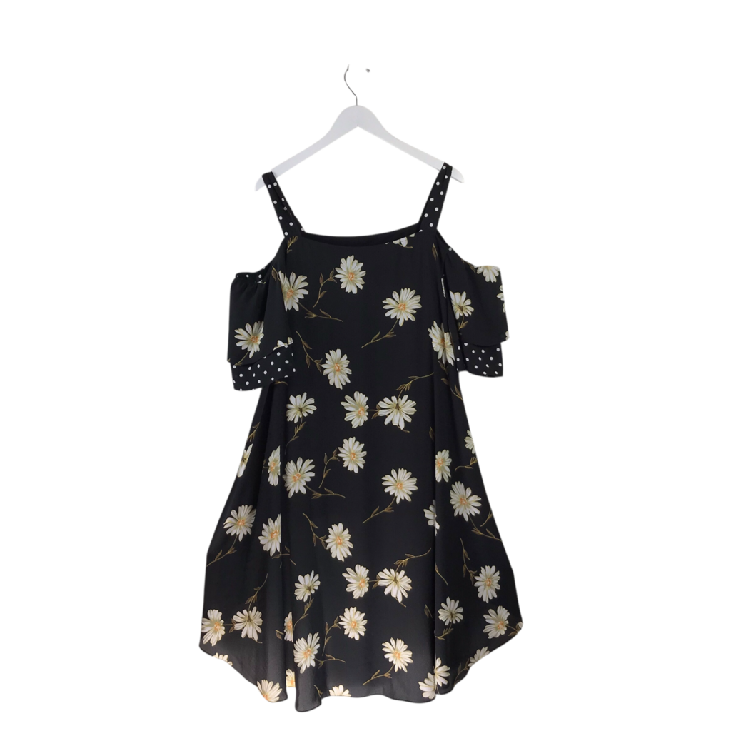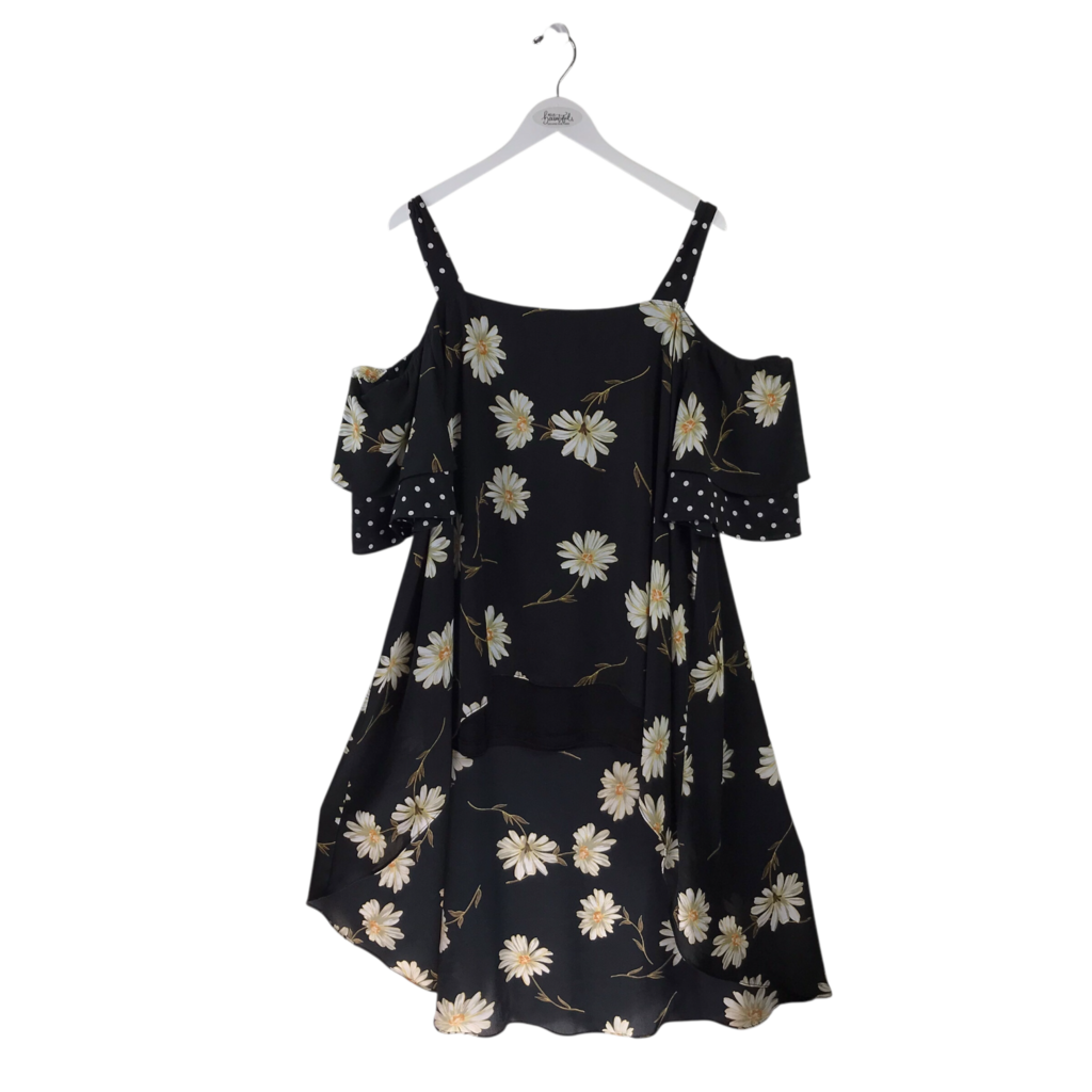 JOSEPH RIBKOFF RET$214 DAISY COLD SHOULDER HI-LOW DESIGNER DRESS BLACK WHITE 22