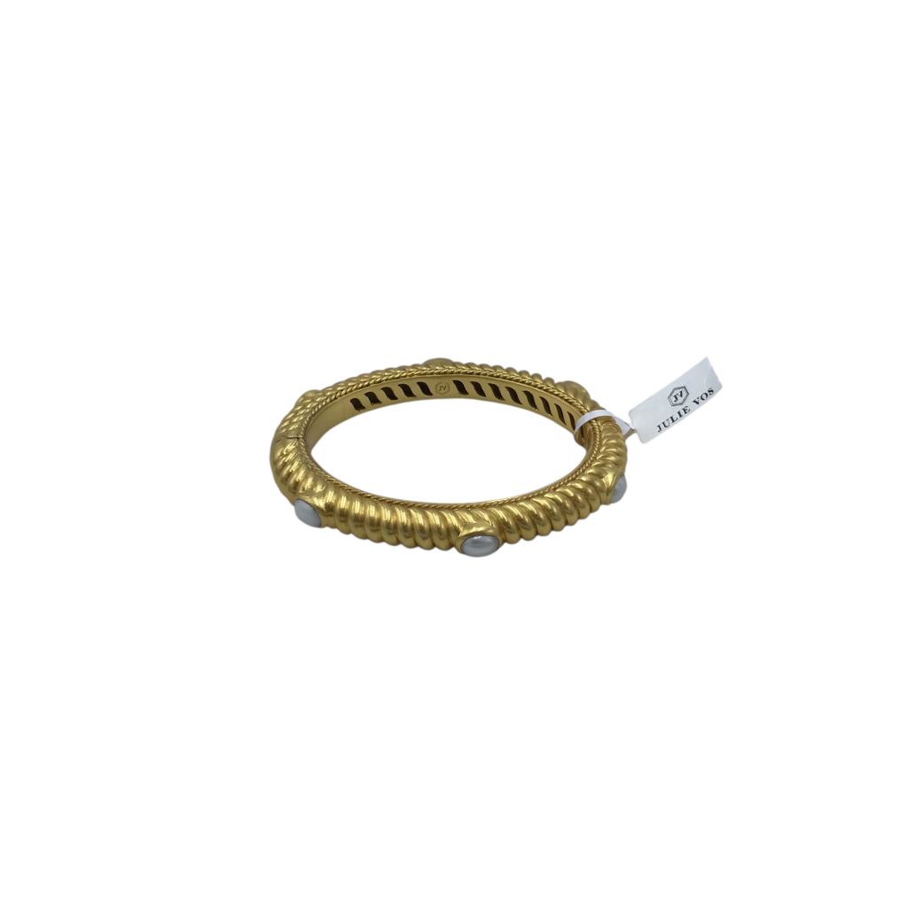 JULIE VOS RET$265 GOLD PLATED HINGED BANGLE BRACELET WHITE