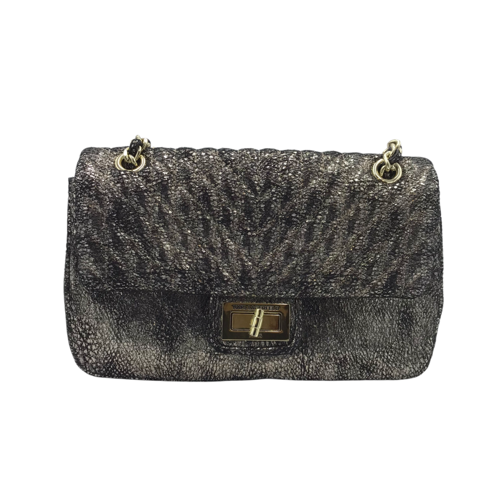 KARL LAGERFELD GLITTER SHOULDER CHAIN STRAP HANDBAG BLACK GOLD