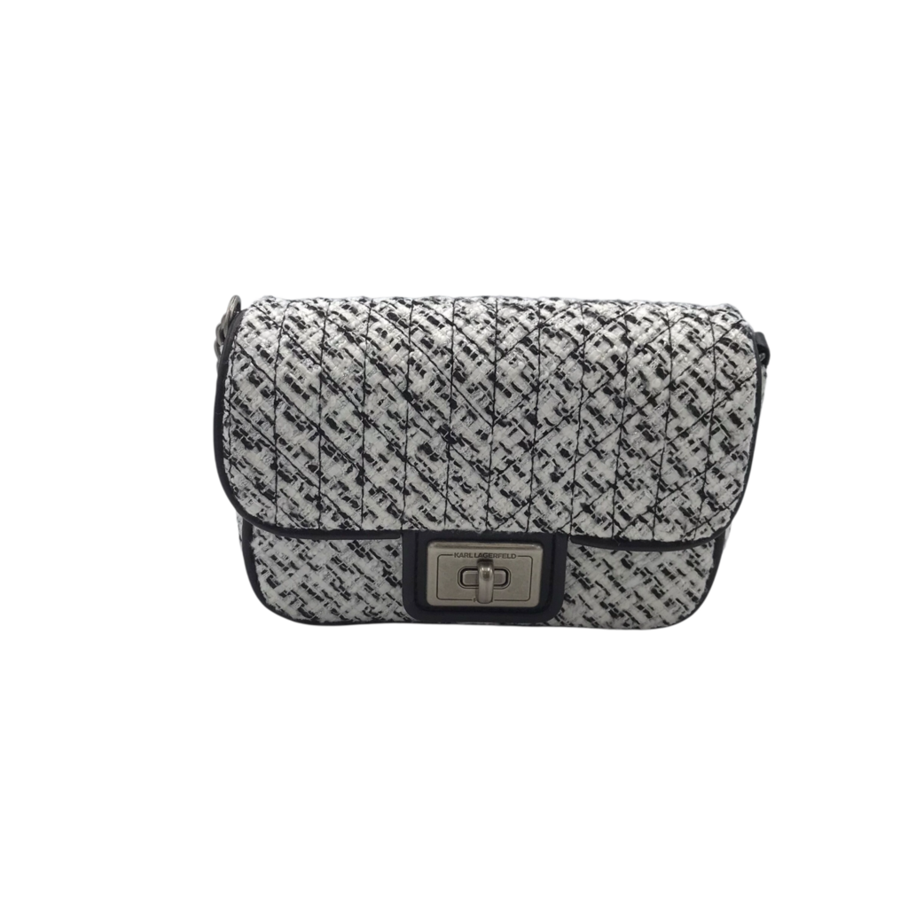 KARL LAGERFELD TWEED CROSSBODY HANDBAG WHITE BLACK