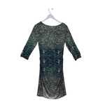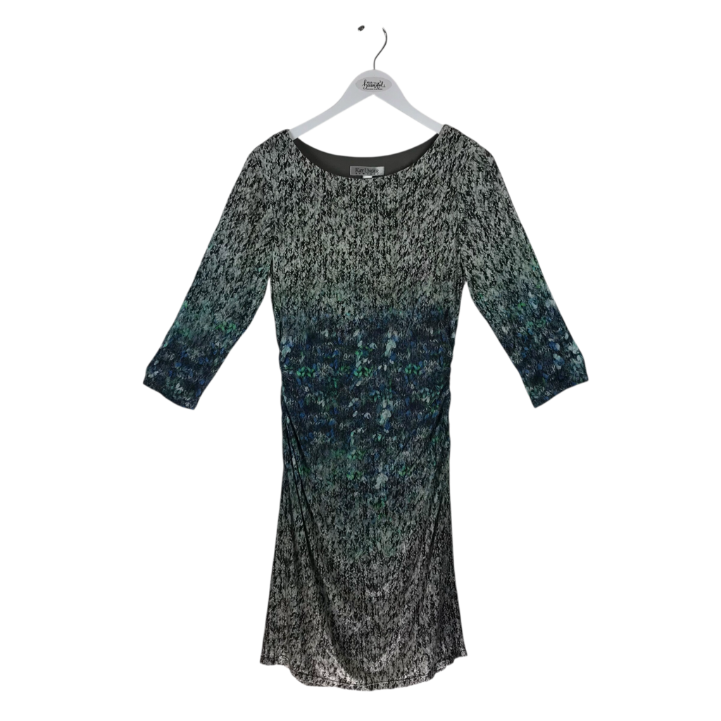 KAY UNGER NWT PRINT RUCHED 3/4 SLEEVE DESIGNER DRESS GREY GREEN 12