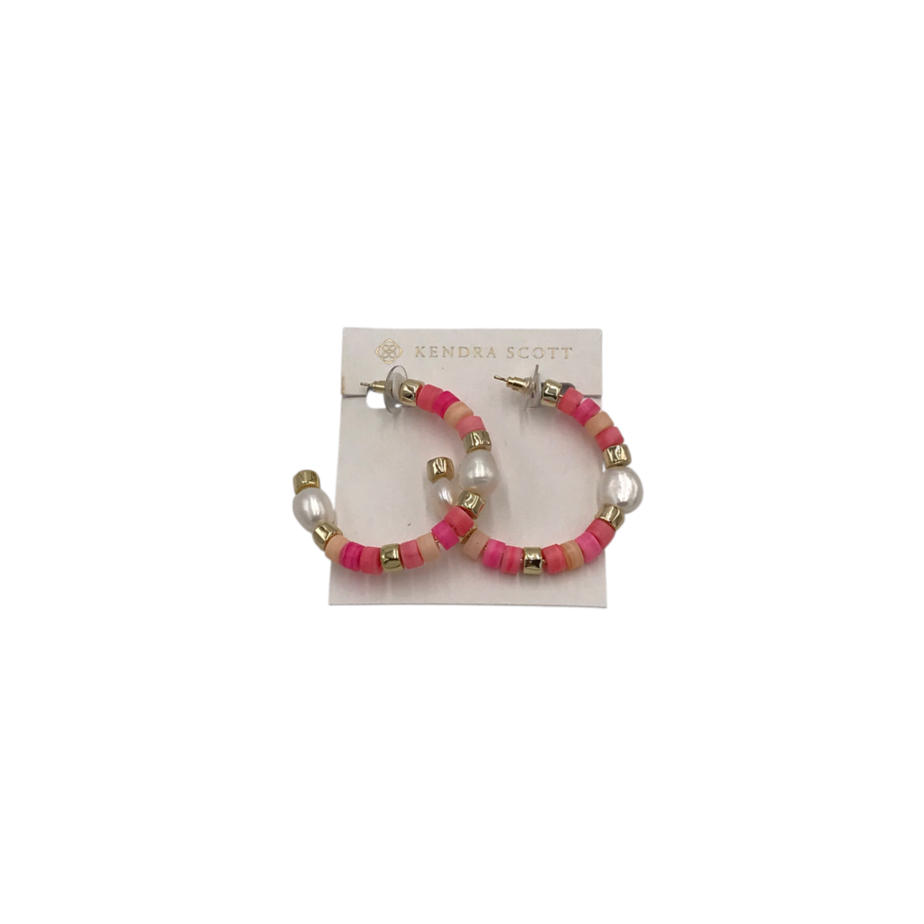 KENDRA SCOTT LARGE HOOPS BEADS EARRINGS PINK WHITE