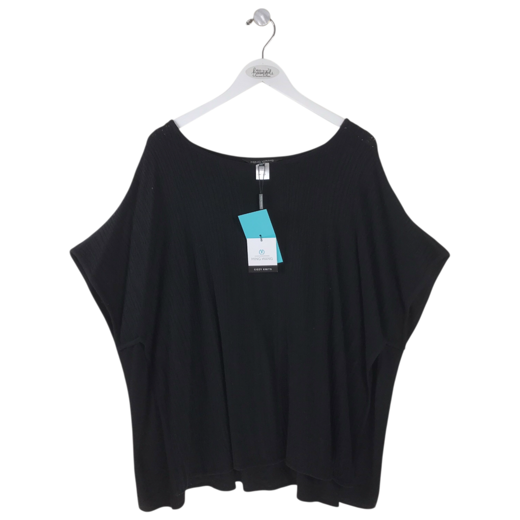 KNIT DESIGNER PONCHO BLACK S/M