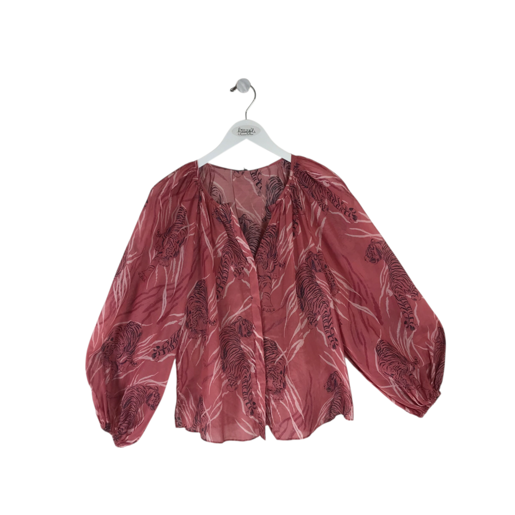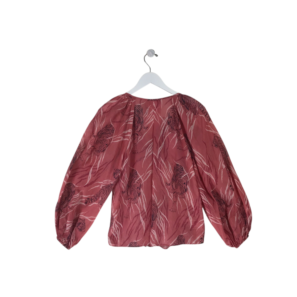 KOBI HALPERIN SILK-BLEND LONG SLEEVE DESIGNER TOP PINK BLACK XSMALL