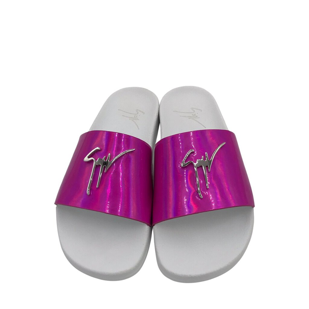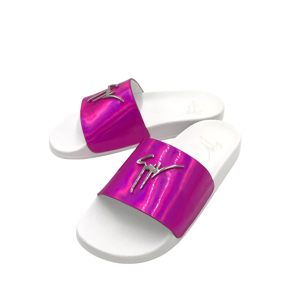 KURT GEIGER METALLIC POOL SLIDE SHOES PINK WHITE 8