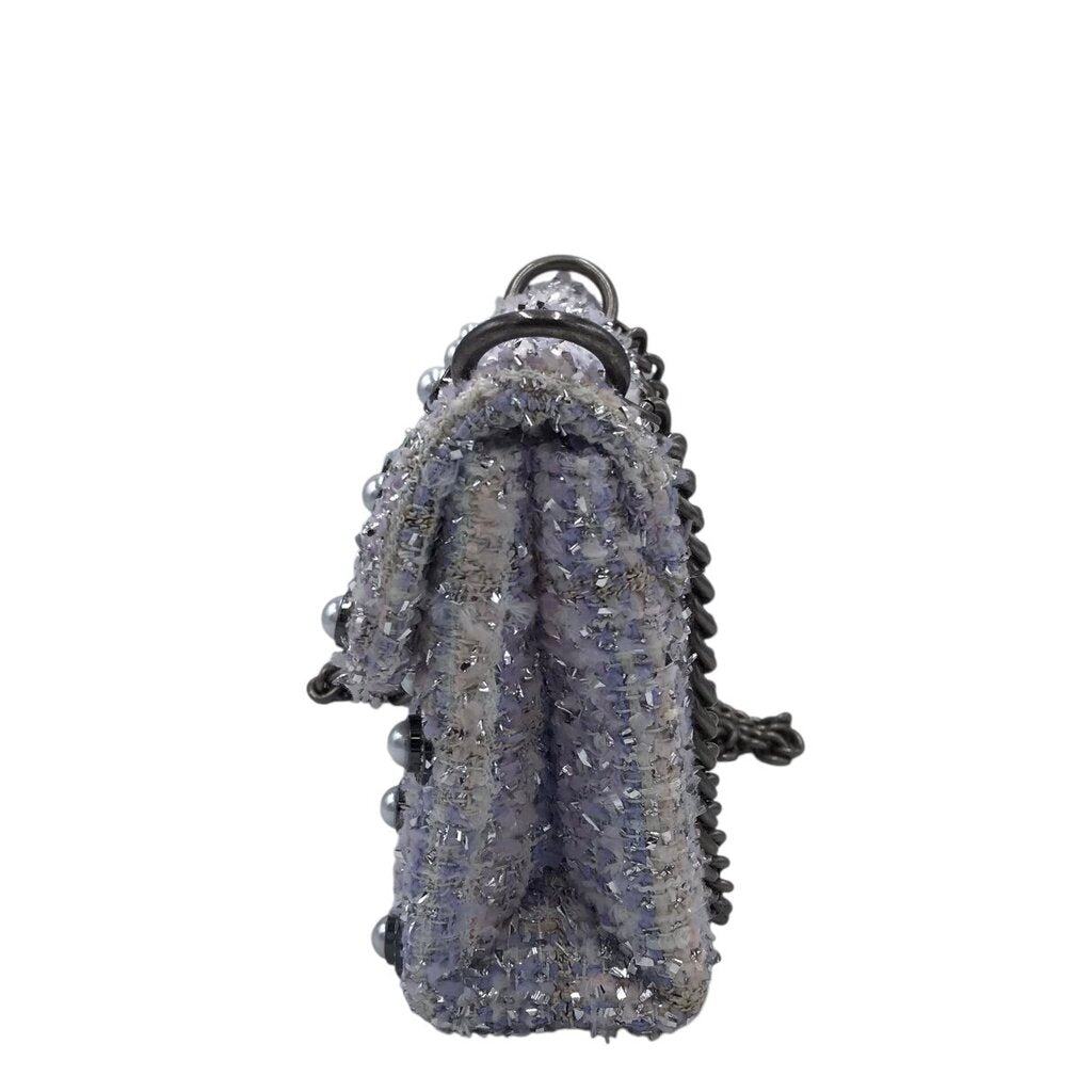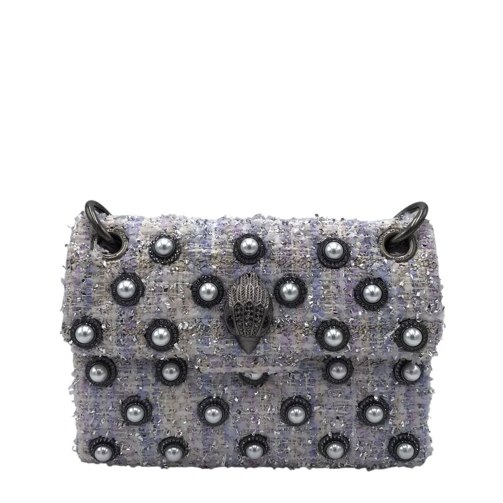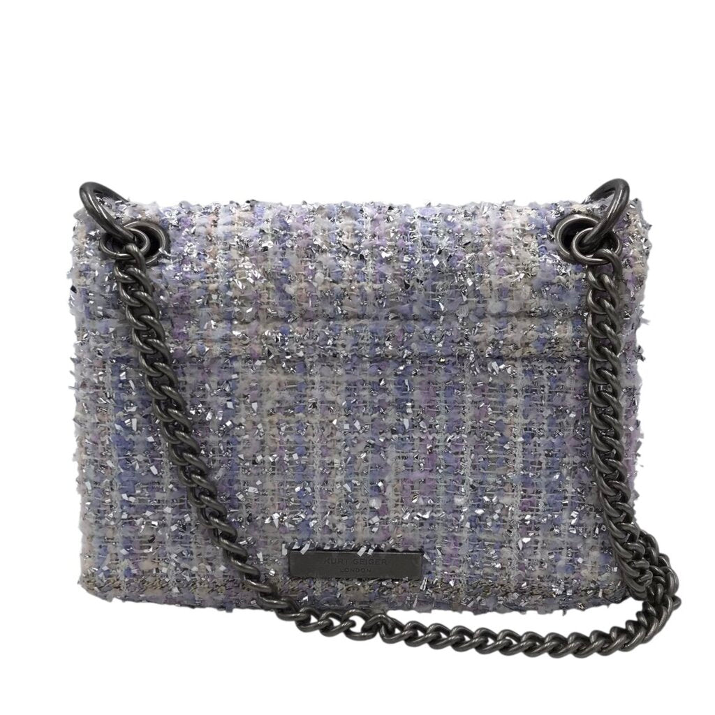 KURT GEIGER RET$300 TWEED PEARL CROSSBODY HANDBAG LAVENDER BLUE