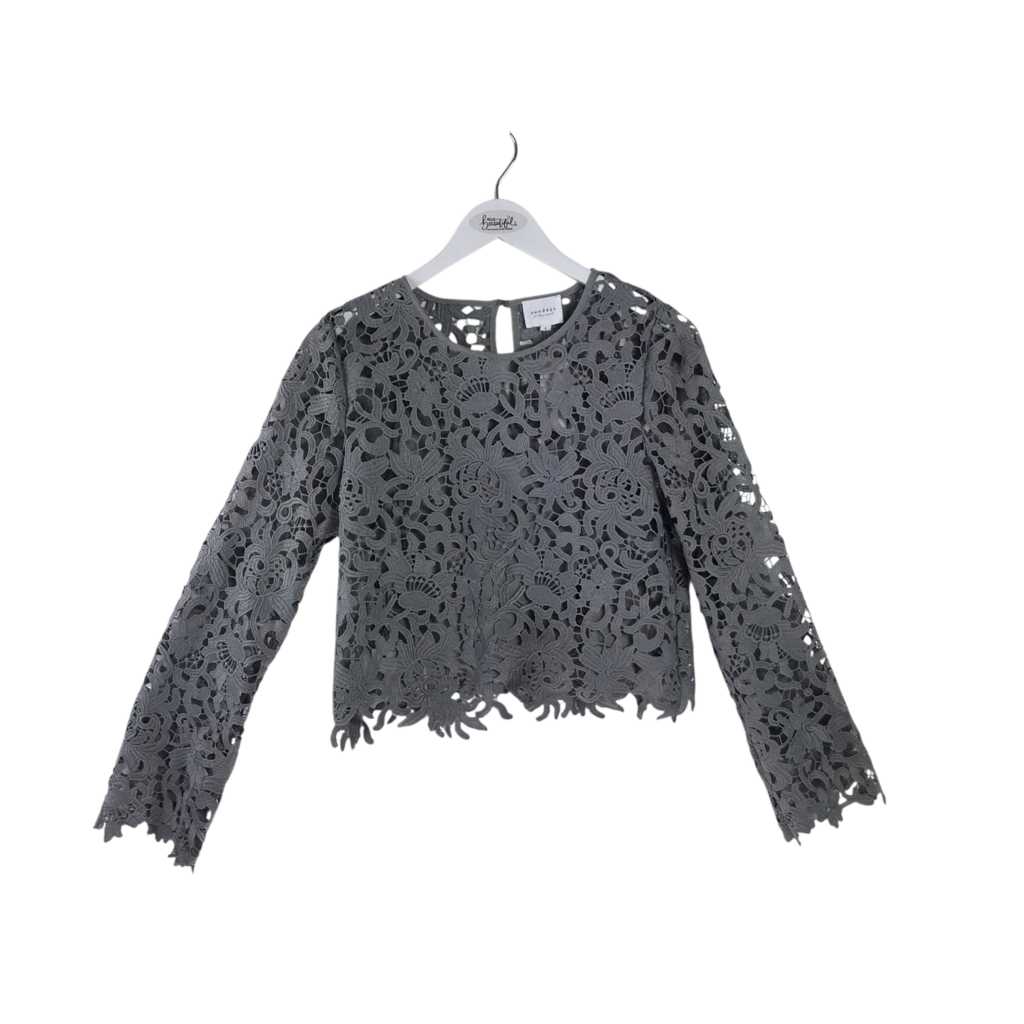 LACE LONG SLEEVE DESIGNER TOP GRAY SMALL