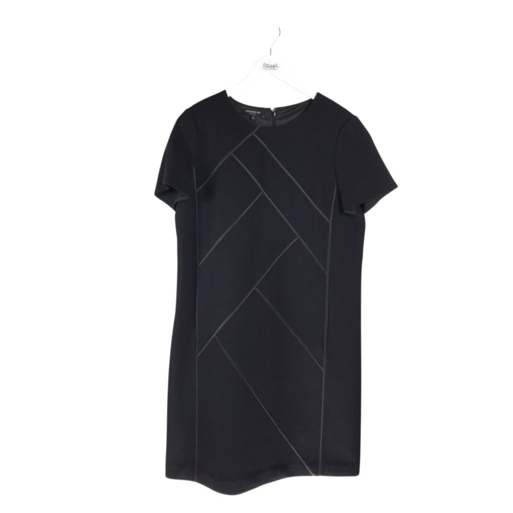 LAFAYETTE 148 100% WOOL SHORT SLEEVE DESIGNER DRESS BLACK LARGE