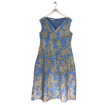 LAFAYETTE 148 FLORAL MAXI DESIGNER DRESS BLUE TAN 12