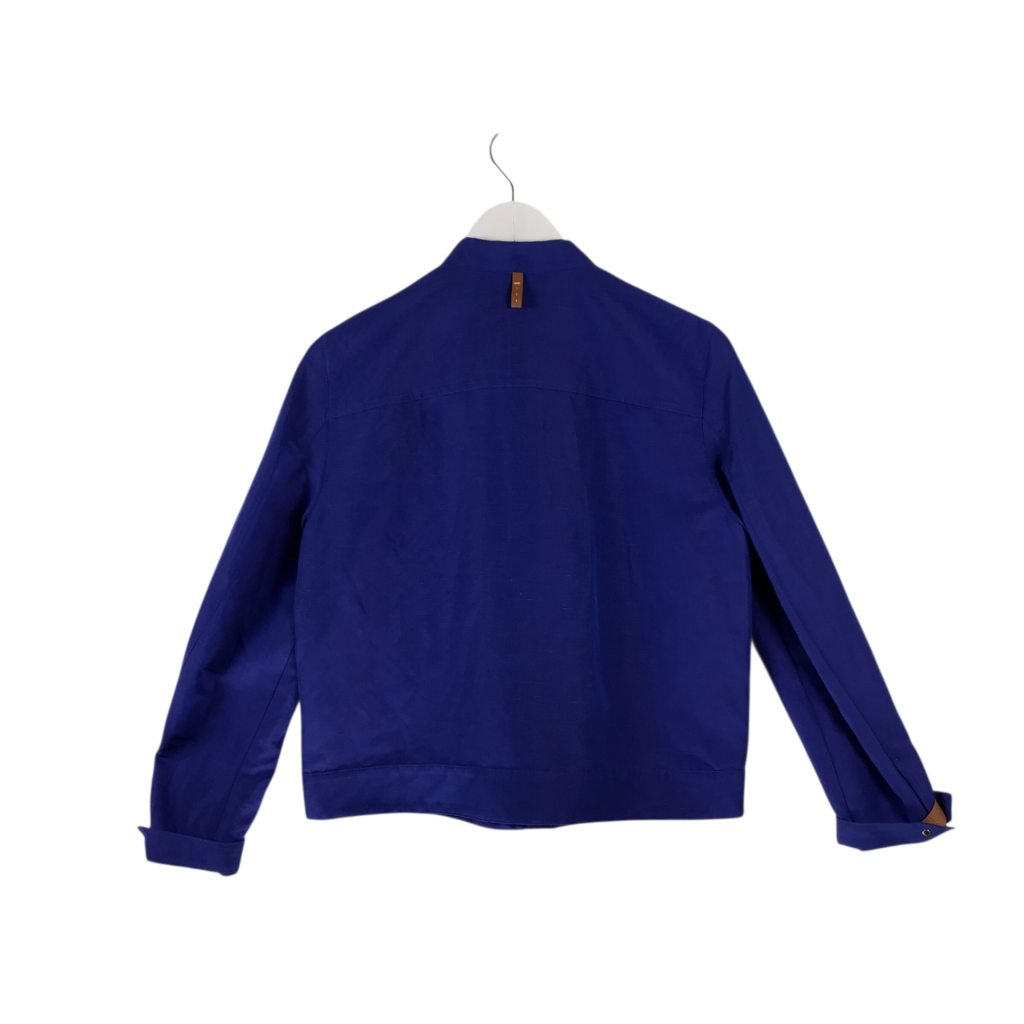 LAFAYETTE 148 LINEN ZIP DESIGNER BLAZER BLUE MEDIUM