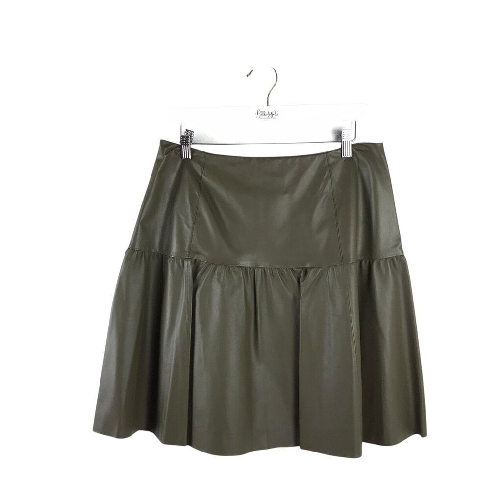 LAFAYETTE 148 RET $998 LEATHER DESIGNER SKIRT OLIVE 8