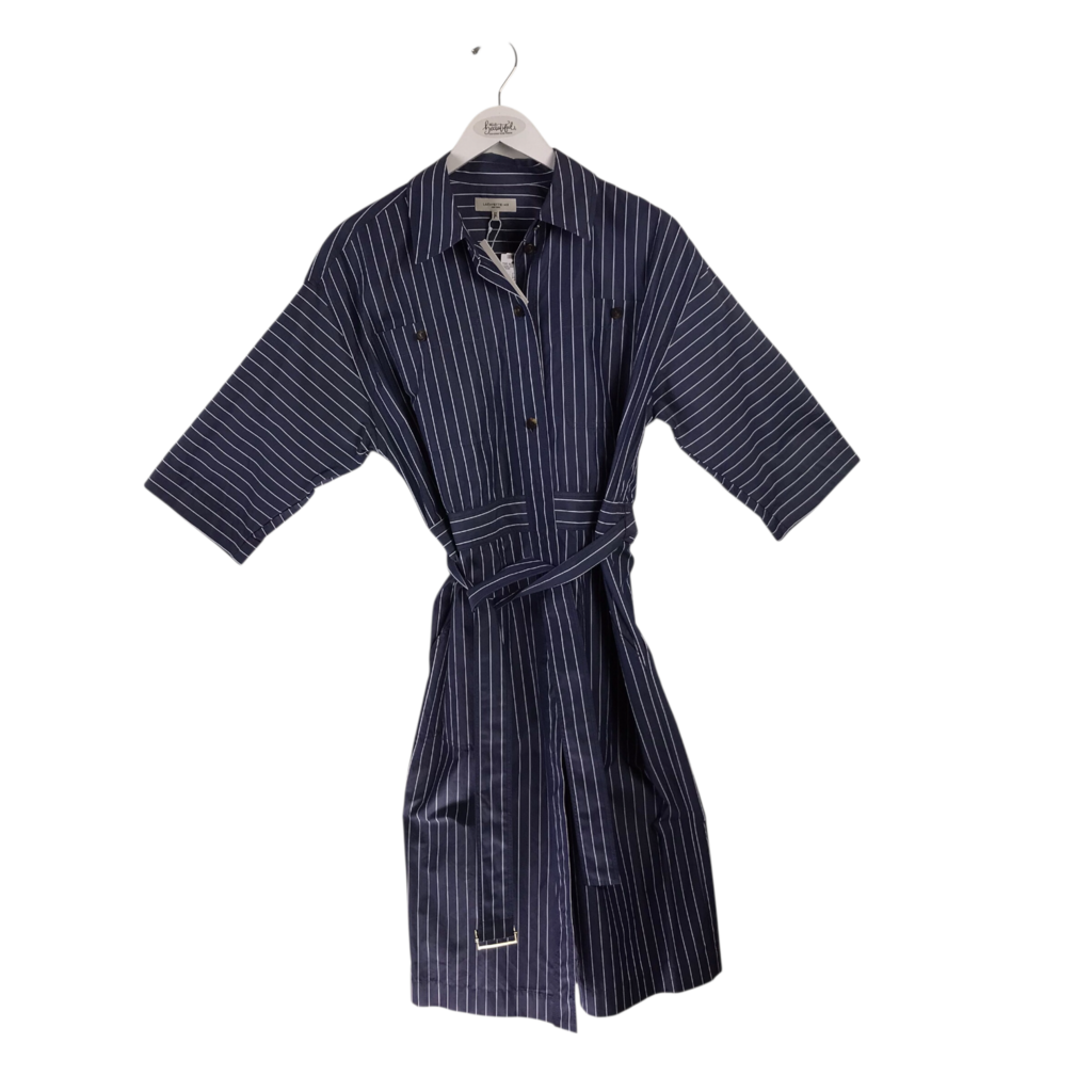 LAFAYETTE 148 STRIPE 3/4 SLEEVE DESIGNER DRESS NAVY WHITE SMALL