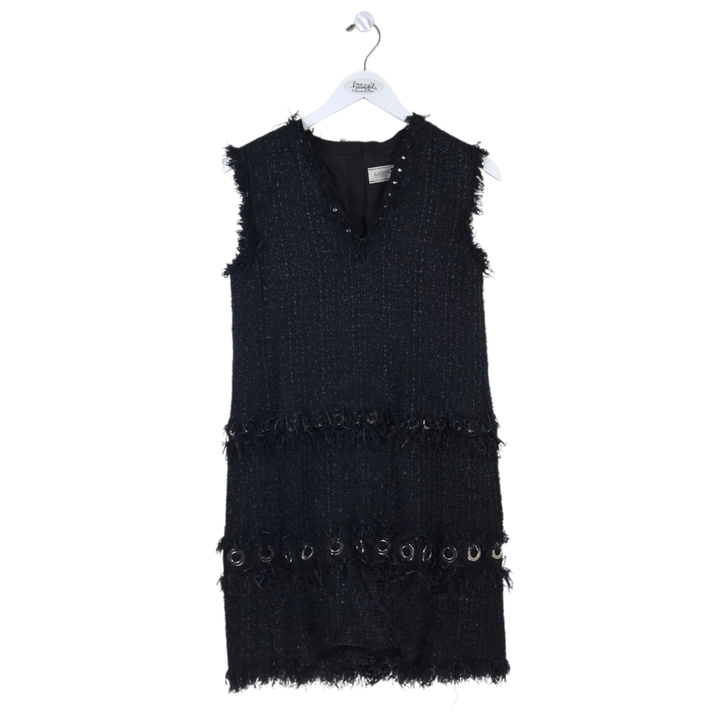 LANVIN TWEED SLEEVELESS DESIGNER DRESS BLACK 6