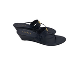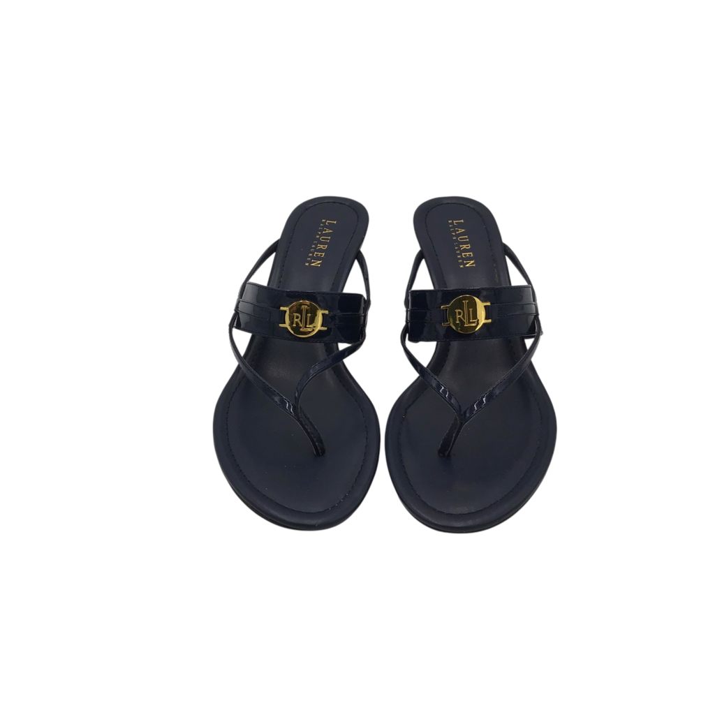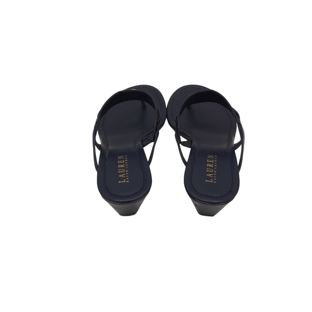 LAUREN RALPH LAUREN LEATHER LOGO WEDGE SANDAL SHOES NAVY GOLD 10B