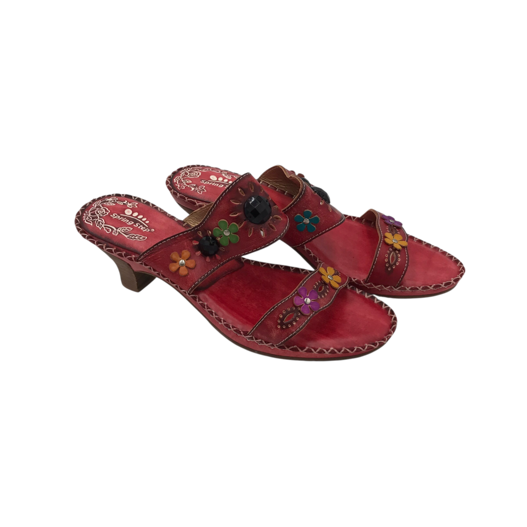 LEATHER HEEL SANDAL SHOES RED 10.5-11