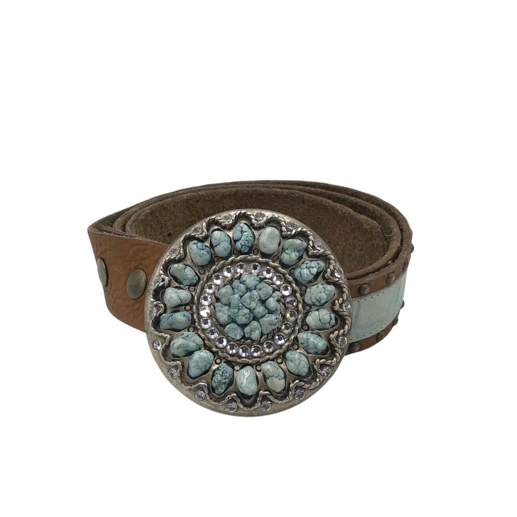 LEATHEROCK LEATHER STUDS BELT WOMEN'S ACCESSORIES BLUE BROWN MEDIUM