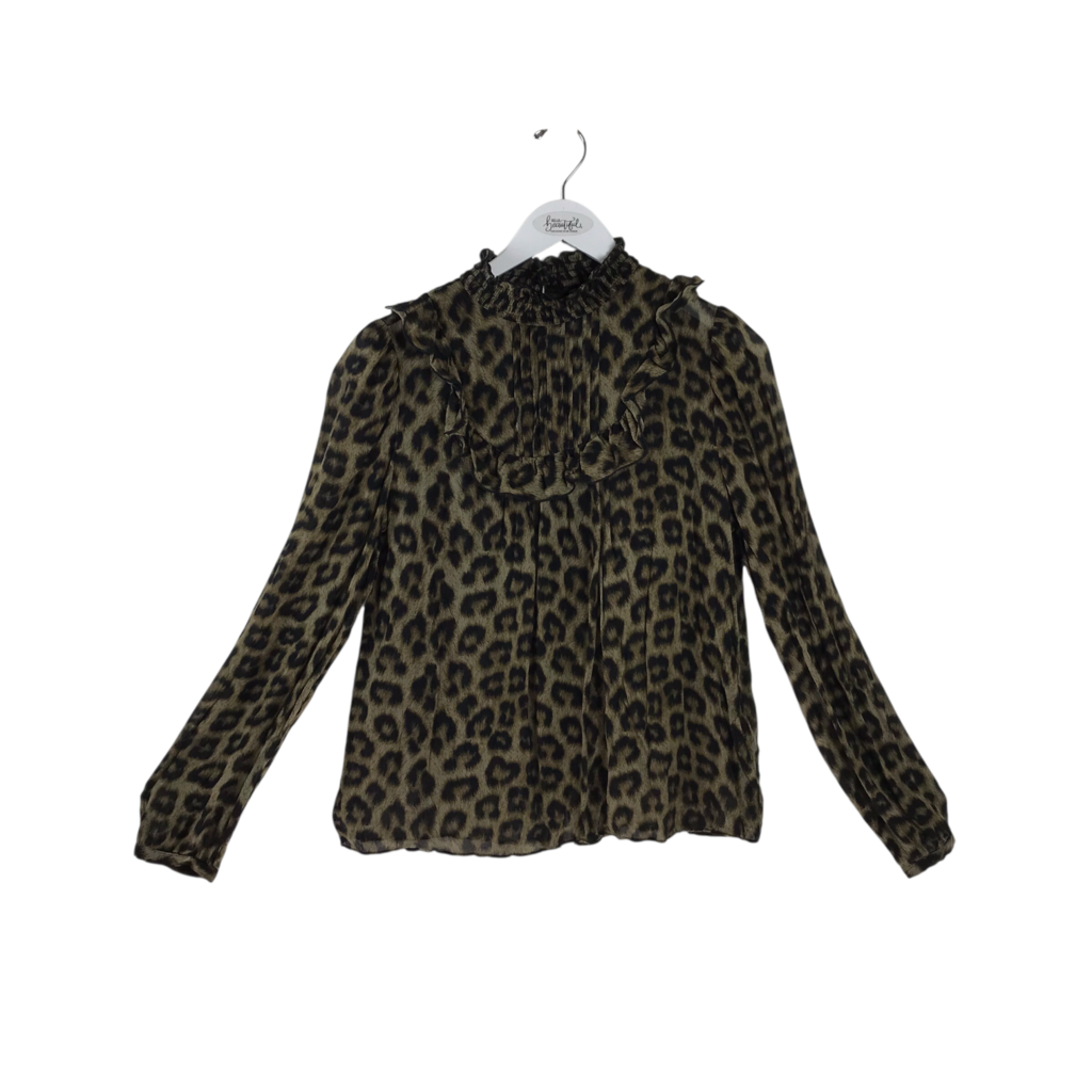 LEOPARD PRINT LONG SLEEVE DESIGNER TOP BROWN BLACK LARGE