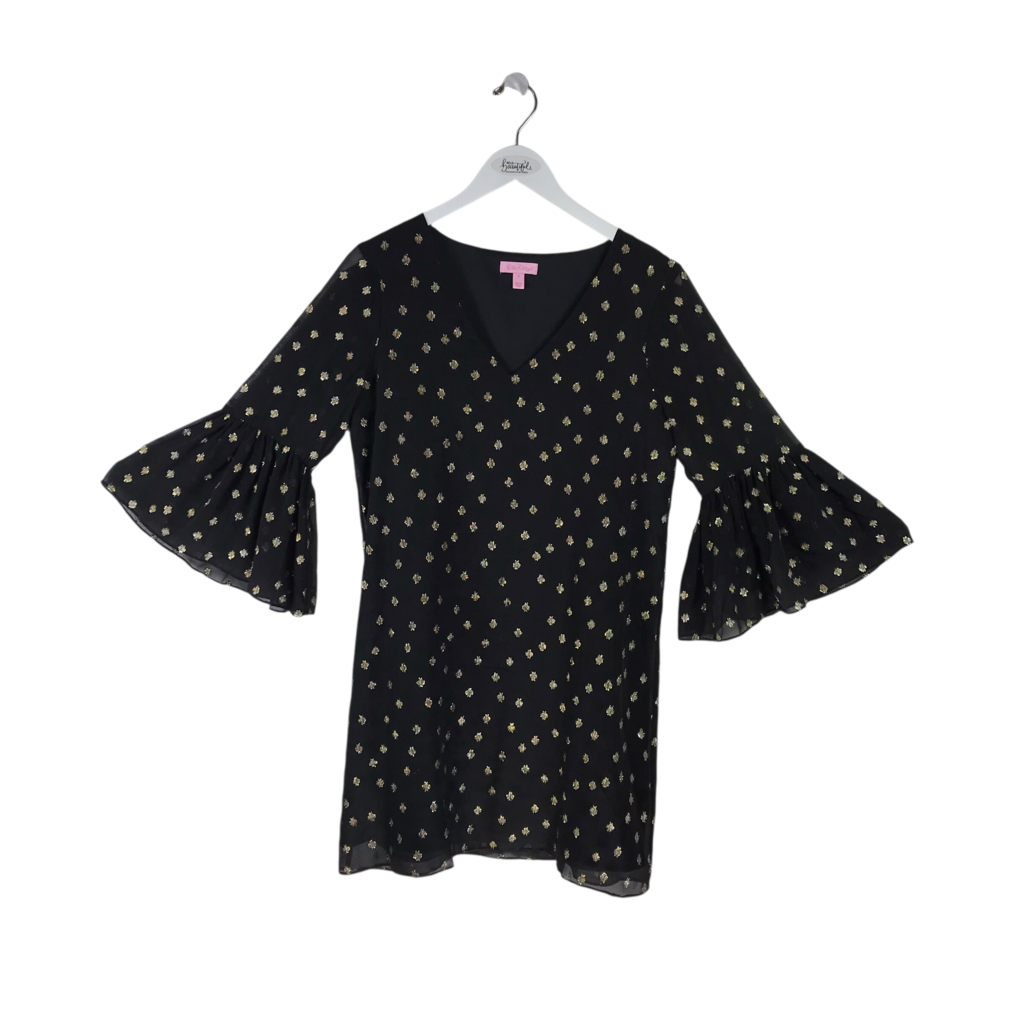 LILLY PULITZER FLARE SLEEVES DESIGNER DRESS BLACK GOLD 6