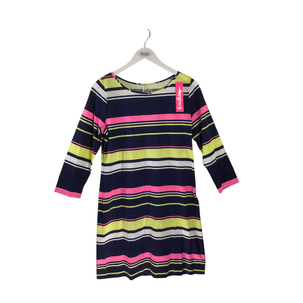 LILLY PULITZER NWT$98 KNIT STRIPE 3/4 SLEEVE DESIGNER DRESS NAVY PINK MEDIUM