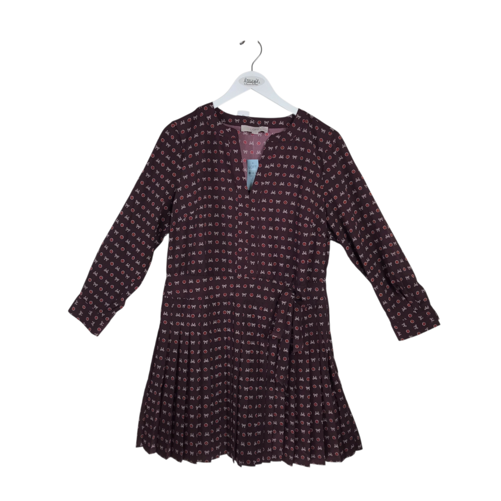 LOFT NWT LONG SLEEVE DRESS BROWN RED 12P