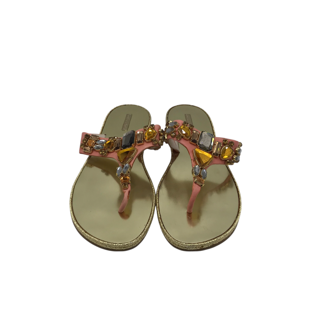LOUISE ET CIE RHINESTONES FLAT SANDAL SHOES PINK GOLD 10B