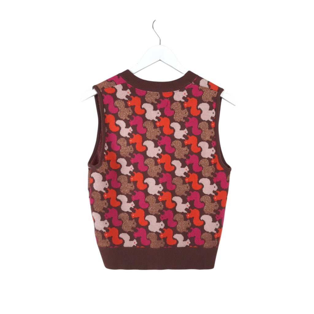 MAEVE PLAID SLEEVELESS SWEATER BROWN PINK MEDIUM