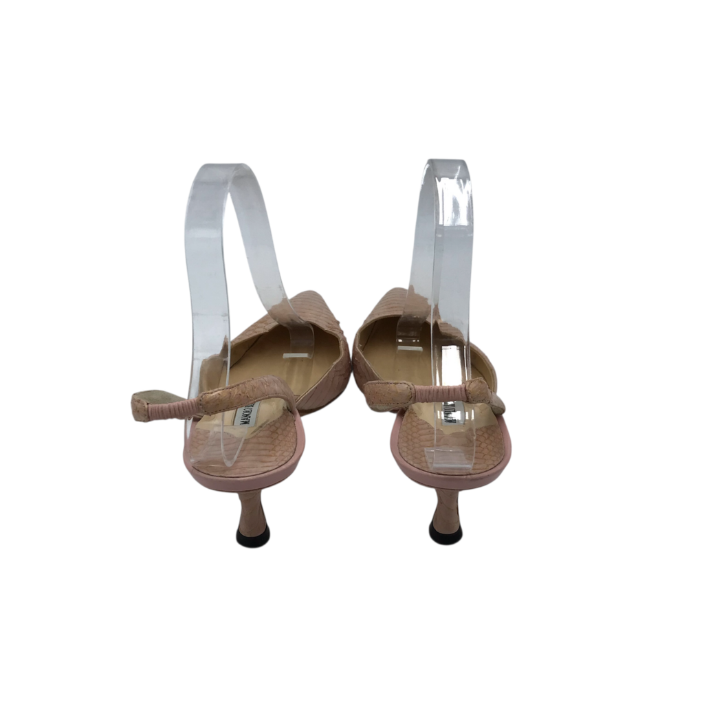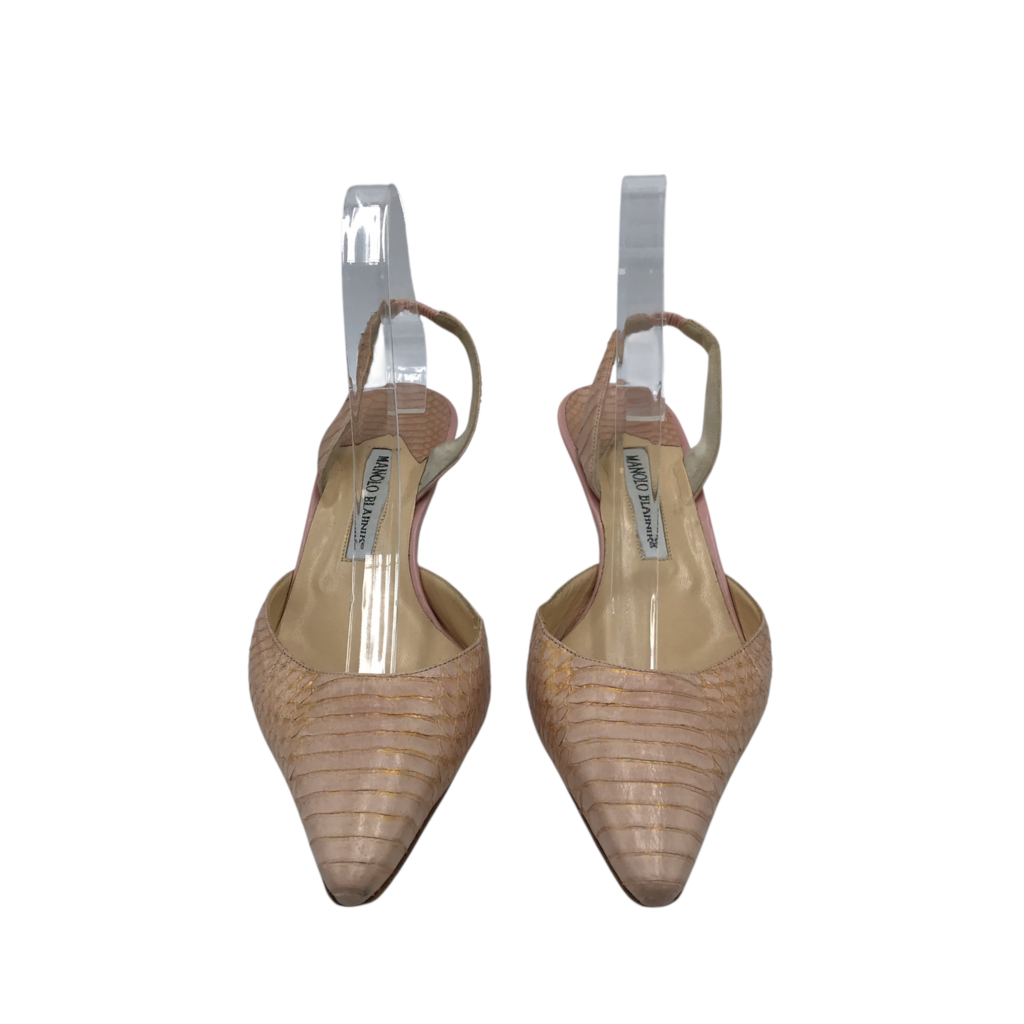 MANOLO BLAHNIK "CAROLYNE" SNAKESKIN-EMBOSSED LEATHER SLINGBACK LUXE SHOES PINK 39.5