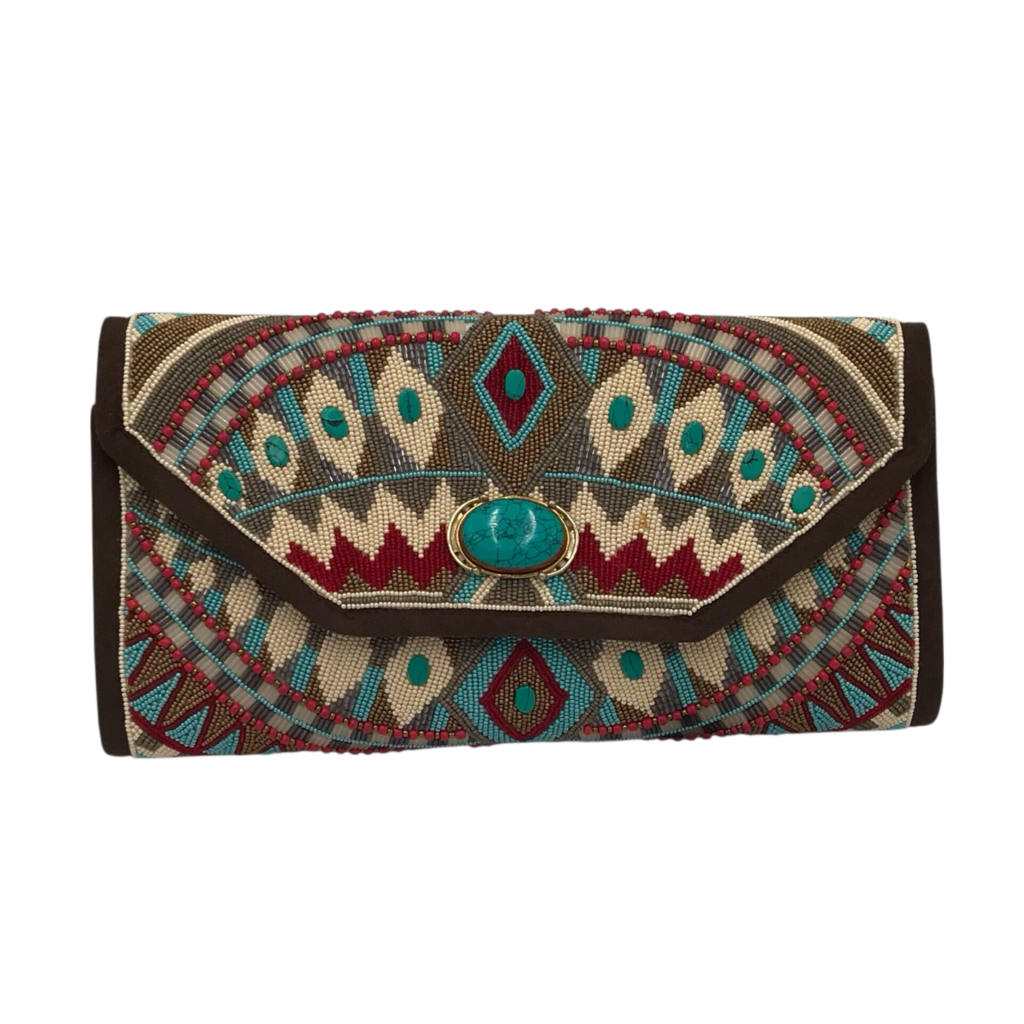 MARY FRANCES RET$165 BEADED CLUTCH CROSSBODY HANDBAG BLUE BROWN