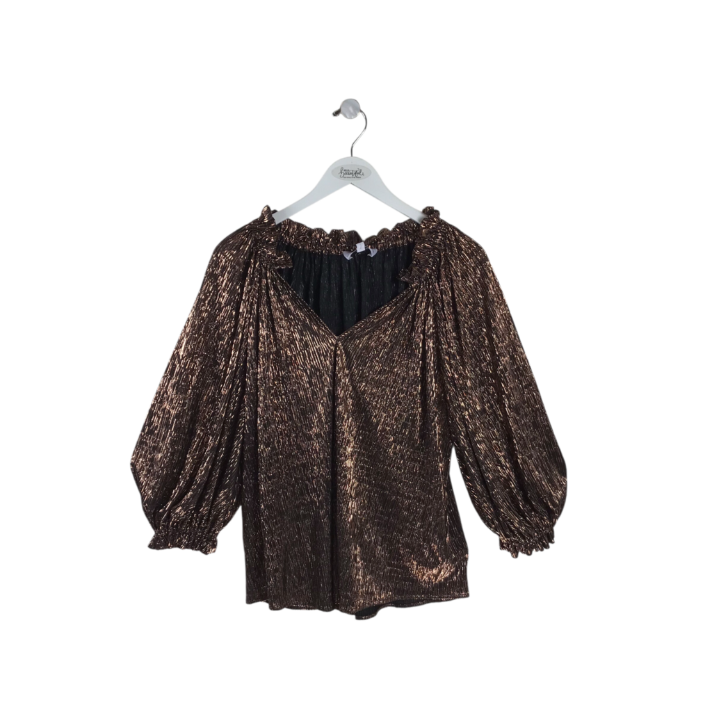 METALLIC LONG SLEEVE DESIGNER TOP COPPER SMALL