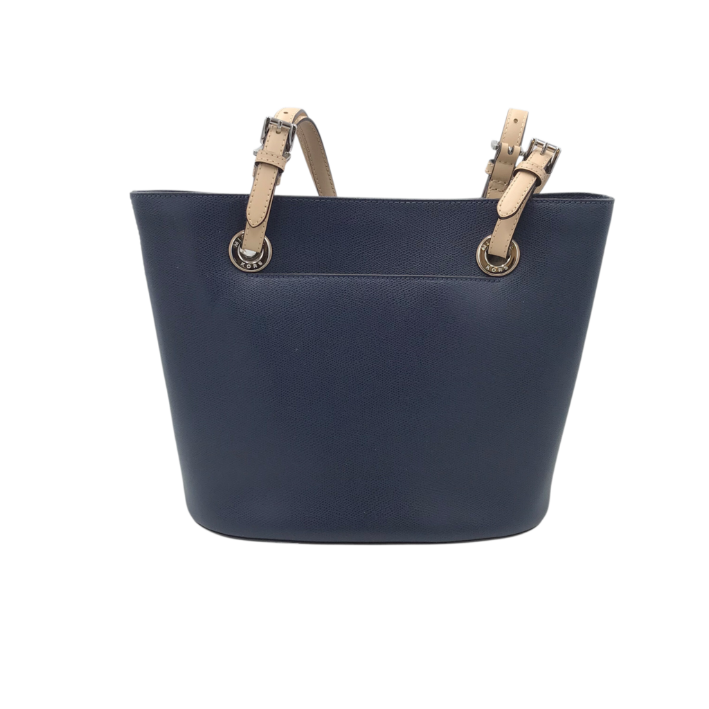 MICHAEL KORS LEATHER TOTE HANDBAG NAVY TAN