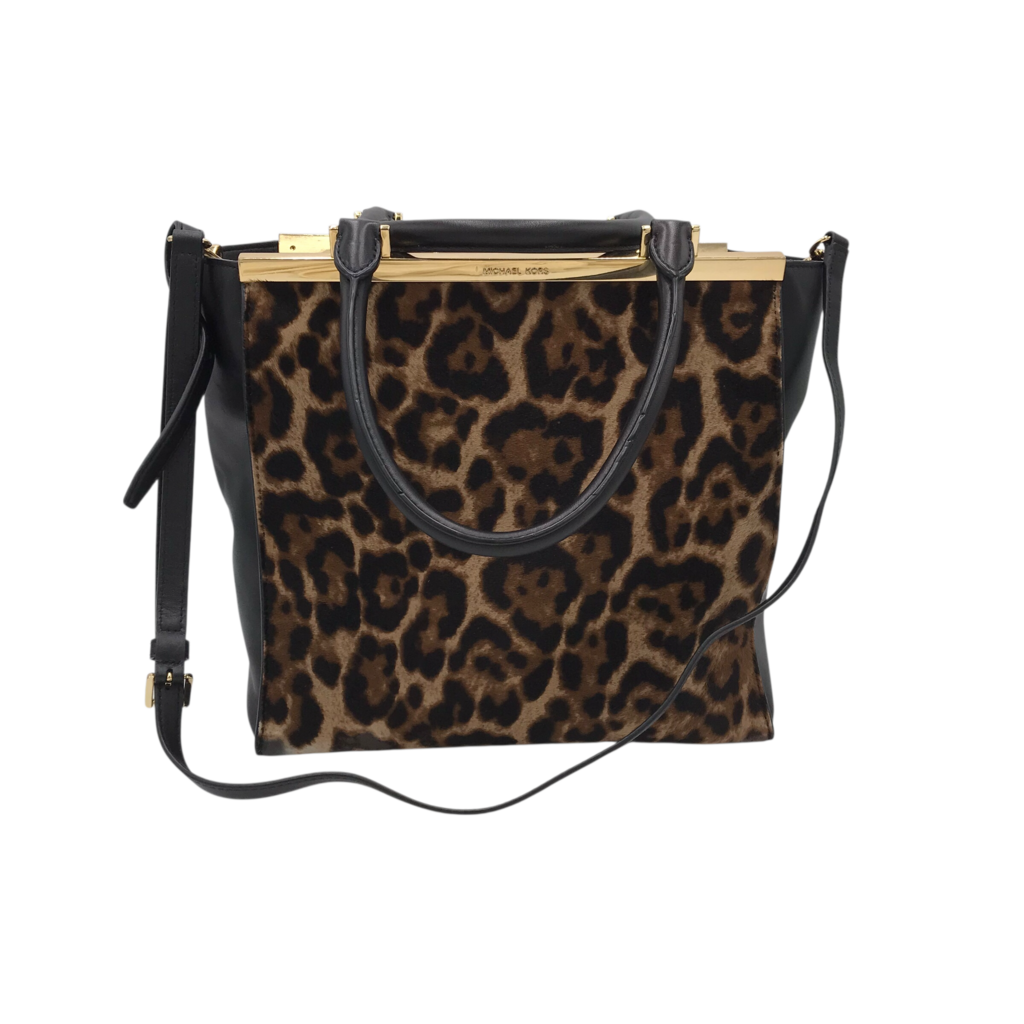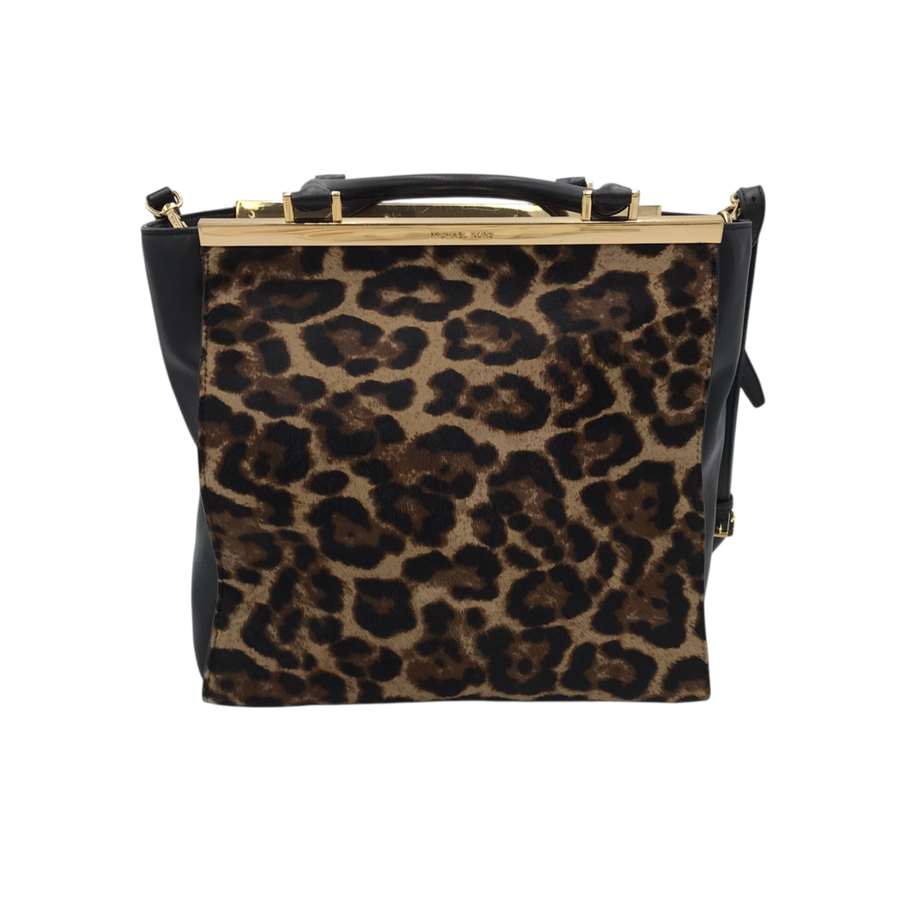 MICHAEL KORS RET$598 CALF HAIR TOTE HANDBAG BLACK GOLD