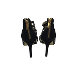 MICHAEL MICHAEL KORS SUEDE CAGED SANDAL SHOES BLACK GOLD 9
