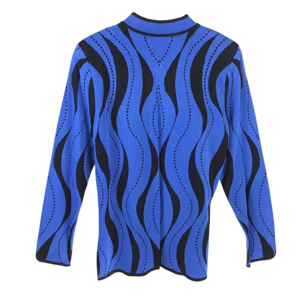 MING WANG PRINT LONG SLEEVE DESIGNER CARDIGAN BLUE BLACK MEDIUM