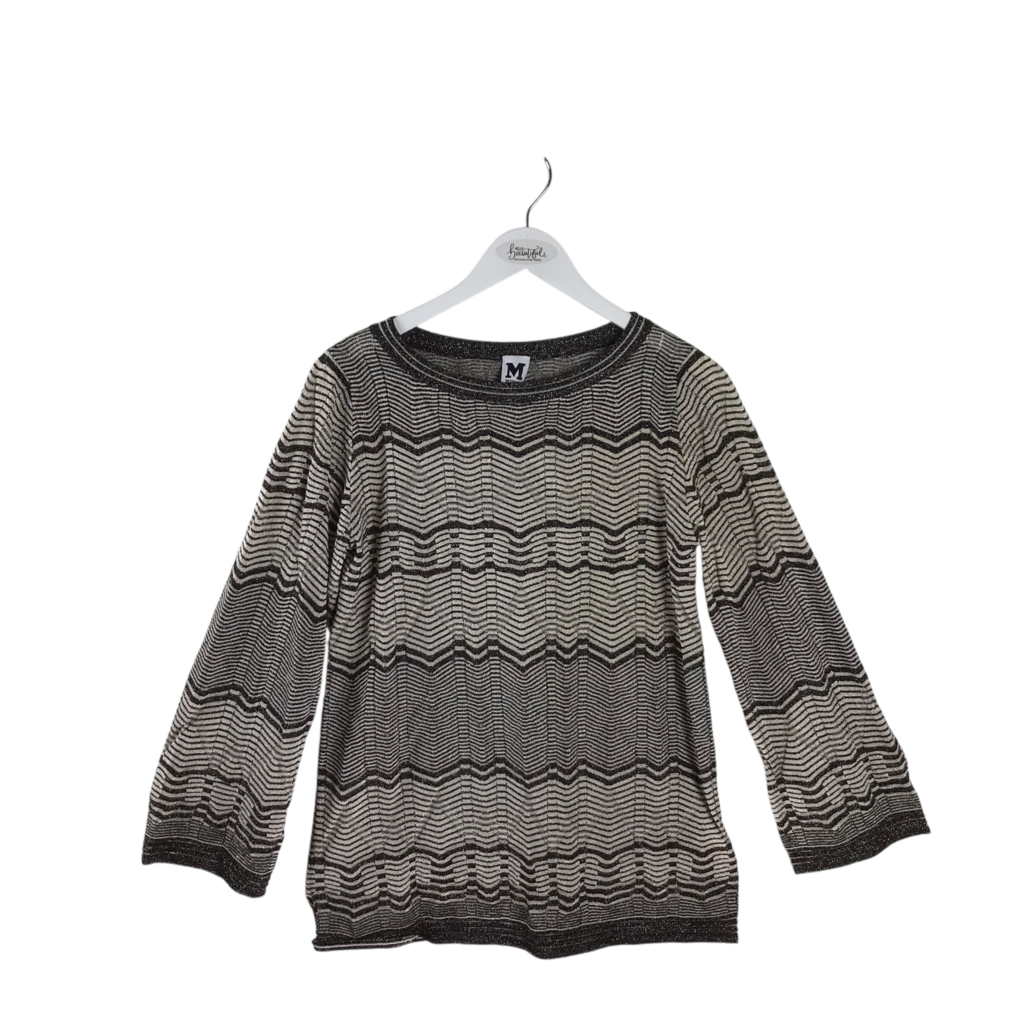 MISSONI ZIG ZAG LONG SLEEVE DESIGNER TOP BLACK BEIGE MEDIUM