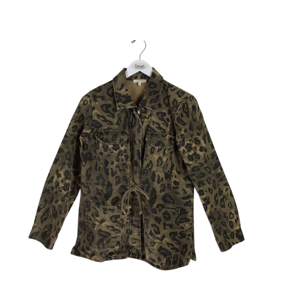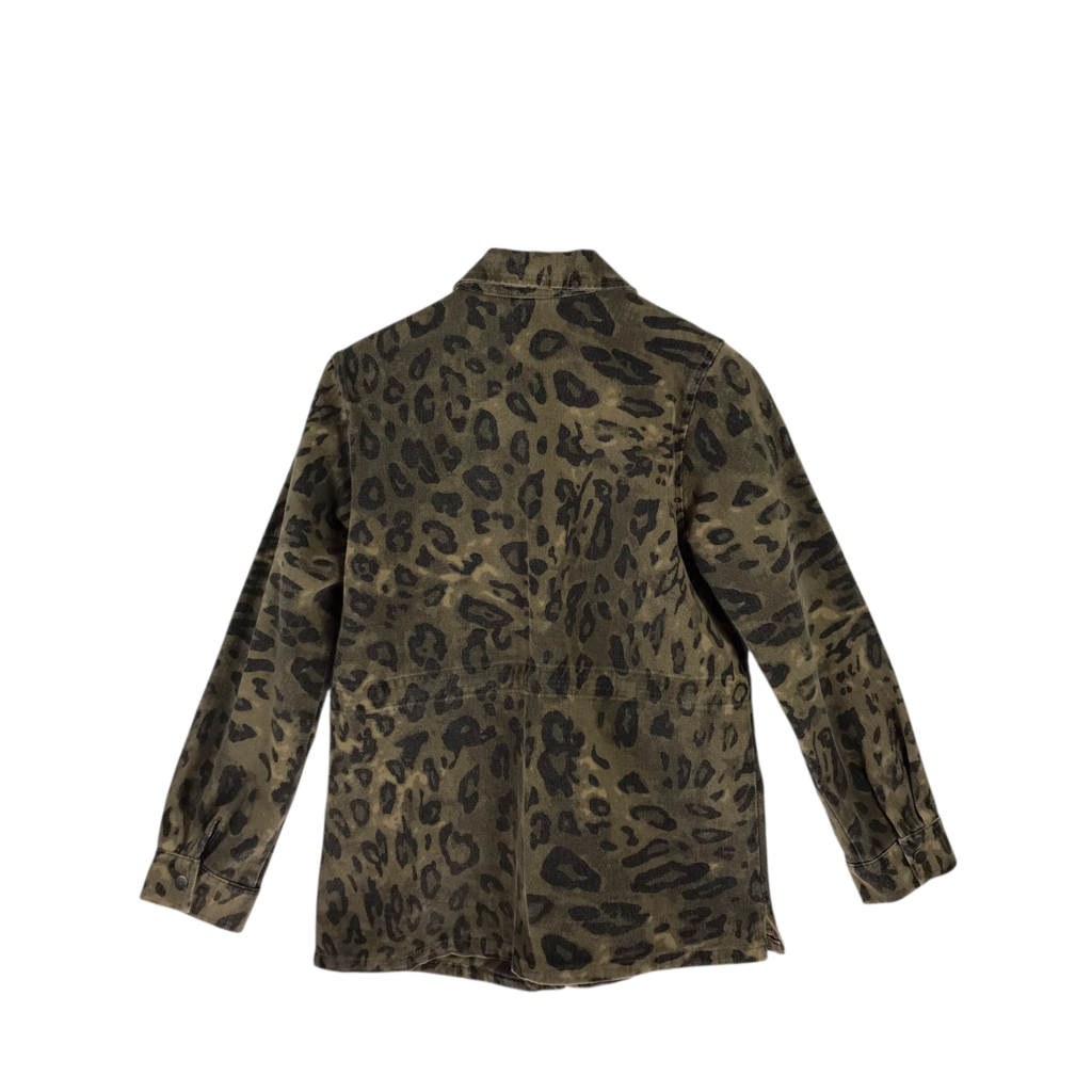 MYSTREE DENIM ANIMAL PRINT UTILITY JACKET OLIVE BLACK XSMALL