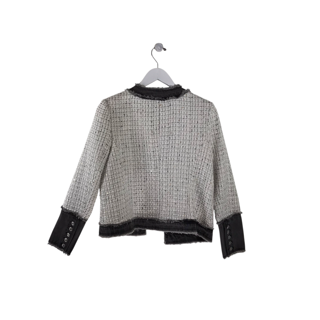 NANETTE BY NANETTE LEPORE NWT$138 TWEED OPEN DDENIM TRIM BLAZER WHITE GREY SMALL