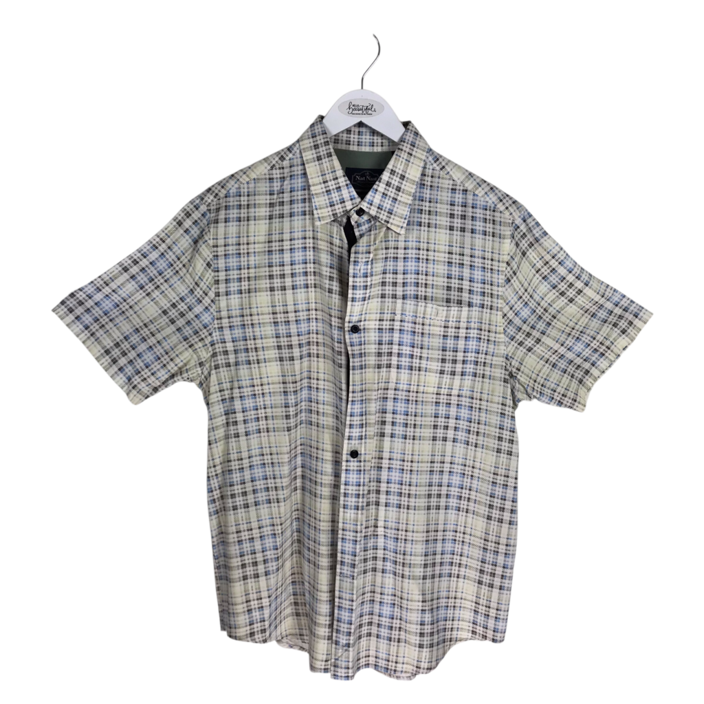 NAT NAST SILK SHORT SLEEVE MEN SHIRT WHITE BLUE MEDIUM