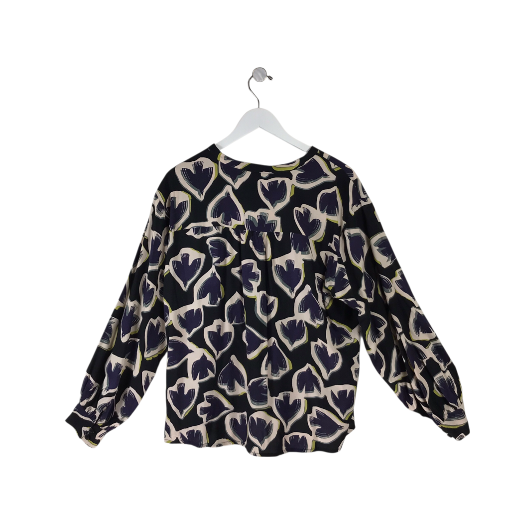 NWT$108 PRINT LONG SLEEVE TOP NAVY CREAM LARGE