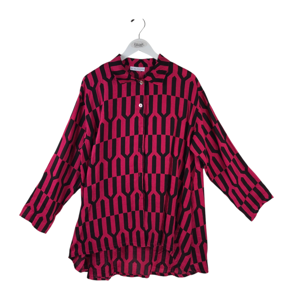 NWT$182 LINEN BLOUSE PINK BLACK SMALL