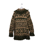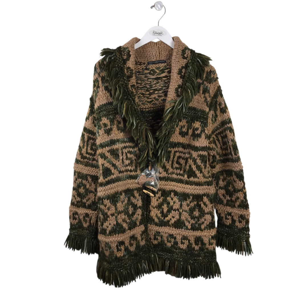 NWT$575 100% WOOL CHUNKY KNIT DESIGNER CARDIGAN GREEN TAN LARGE