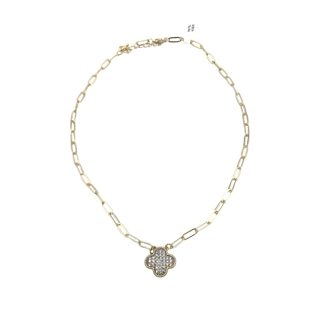 PAPERCLIP PAVE FLOWER NECKLACE GOLD