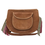 PATCH LEATHER MESSENGER HANDBAG BROWN PINK