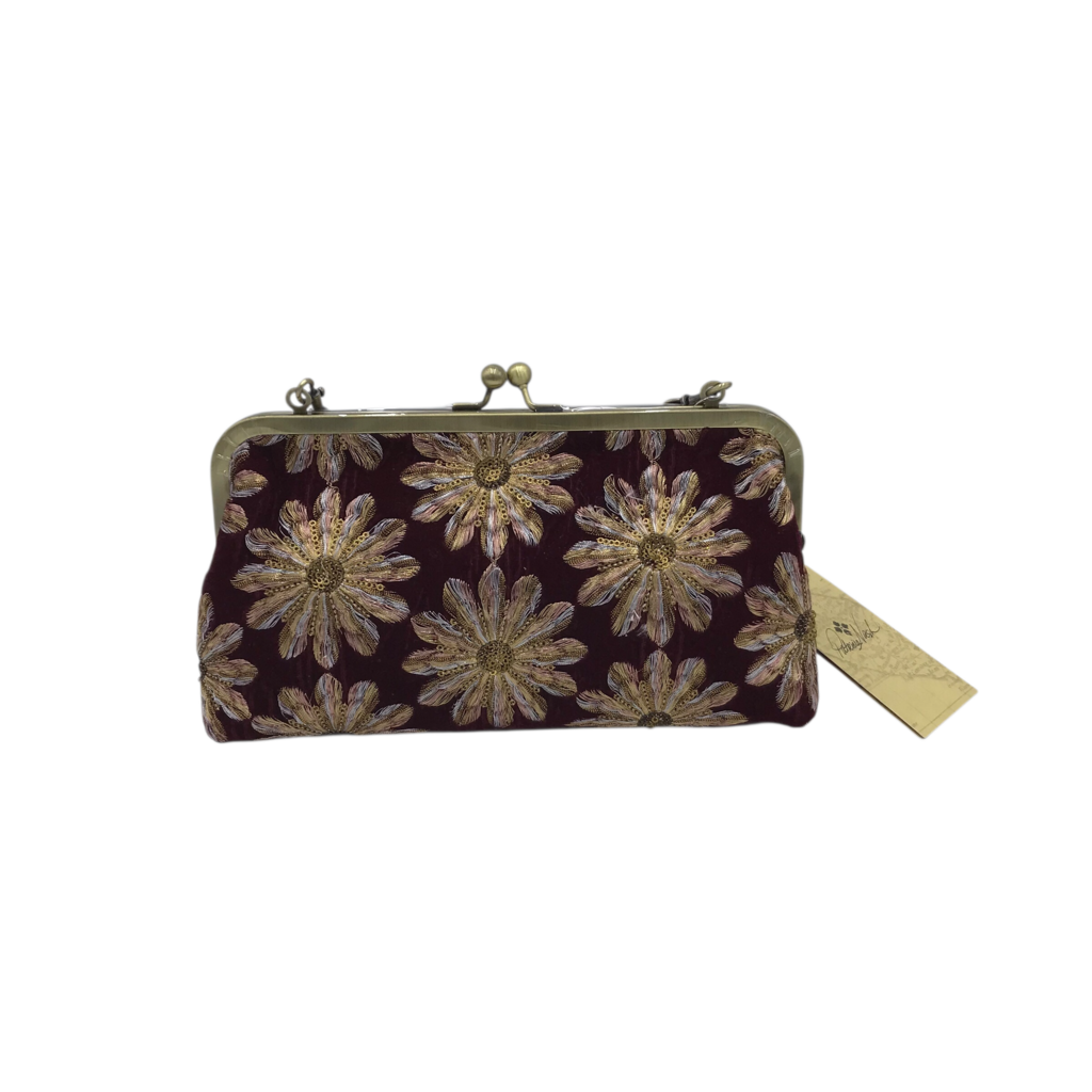 PATRICIA NASH NWT$129 VELVET EMBROIDERED CLUTCH HANDBAG MAROON GOLD