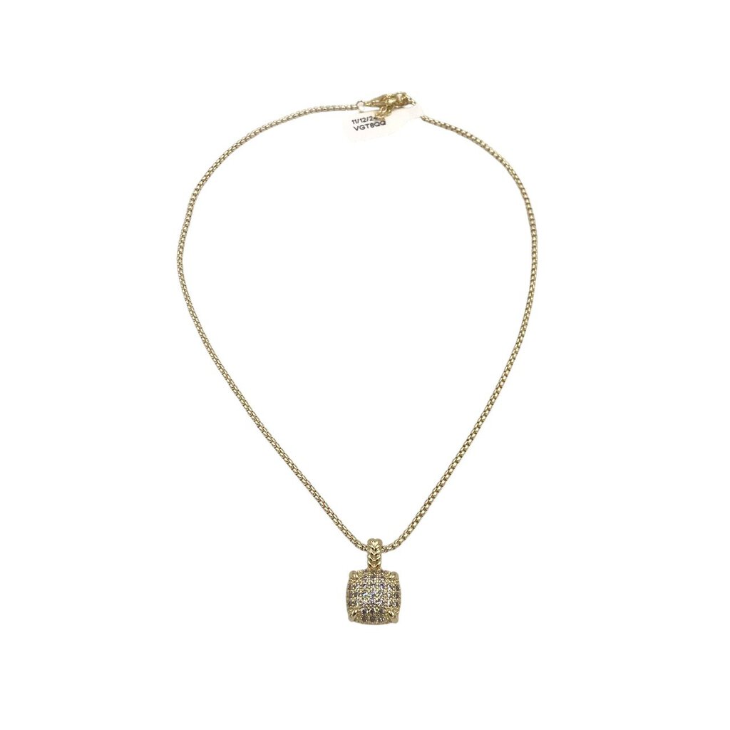 PAVE SQUARE PENDANT BOX CHAIN NECKLACE GOLD 16"