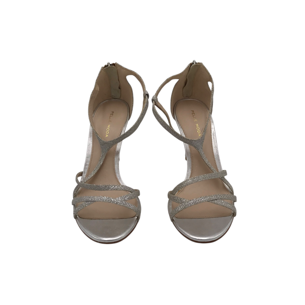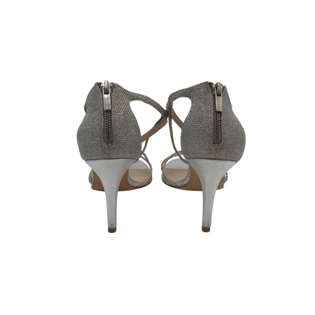 PELLE MODA HEEL GLITTER SANDAL SHOES SILVER 9M