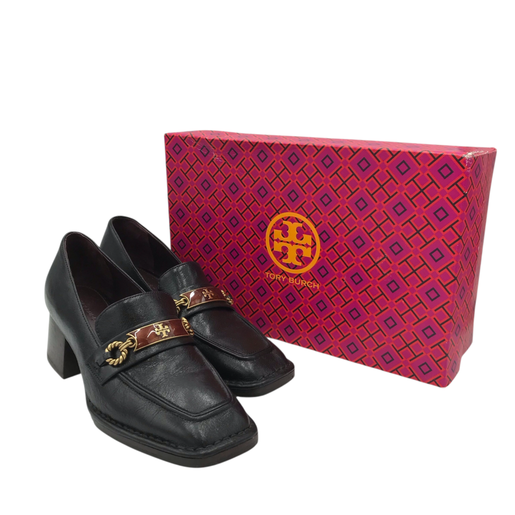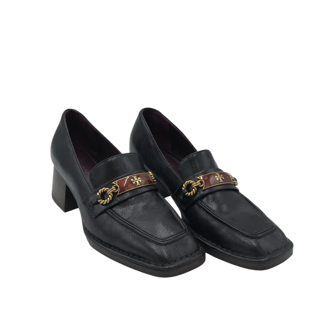 PERRINE HEEL LOAFER DESIGNER SHOES BLACK BRONZE 7