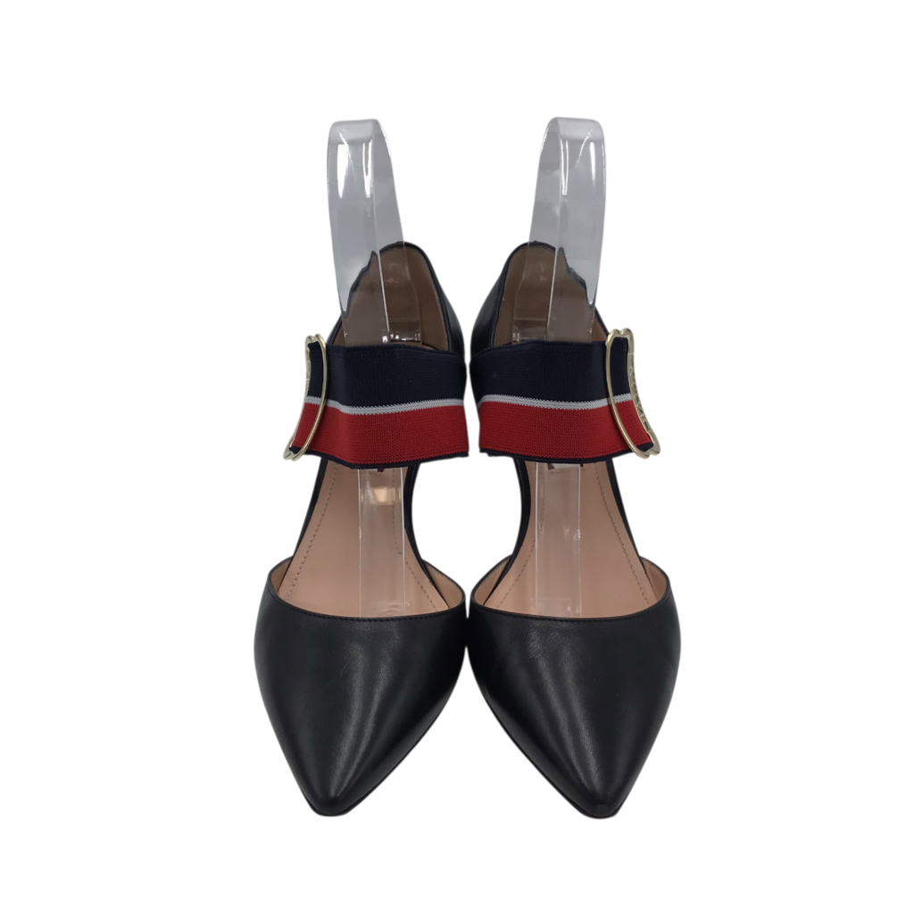 POINTY HEEL DESIGNER SHOES BLACK RED 5.5