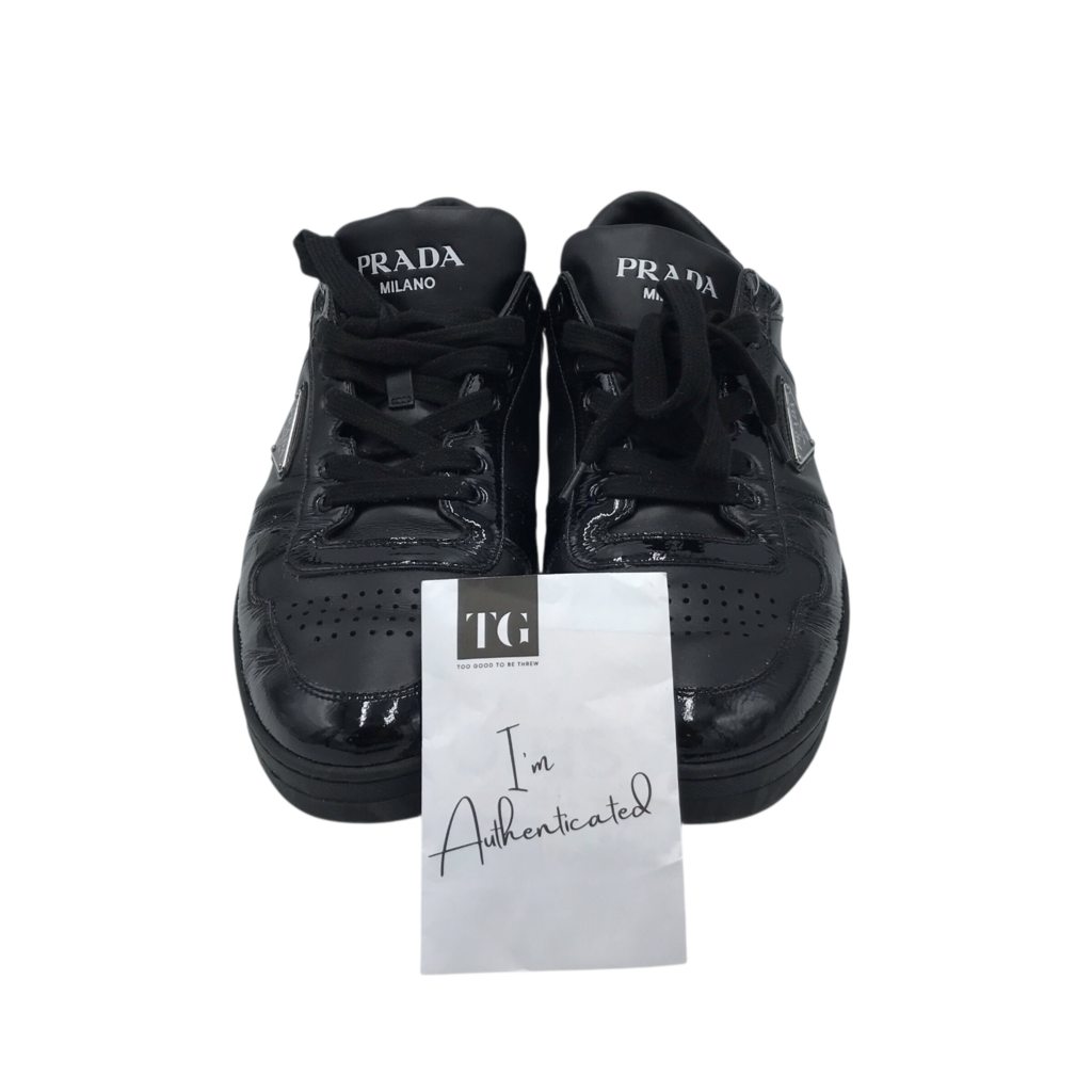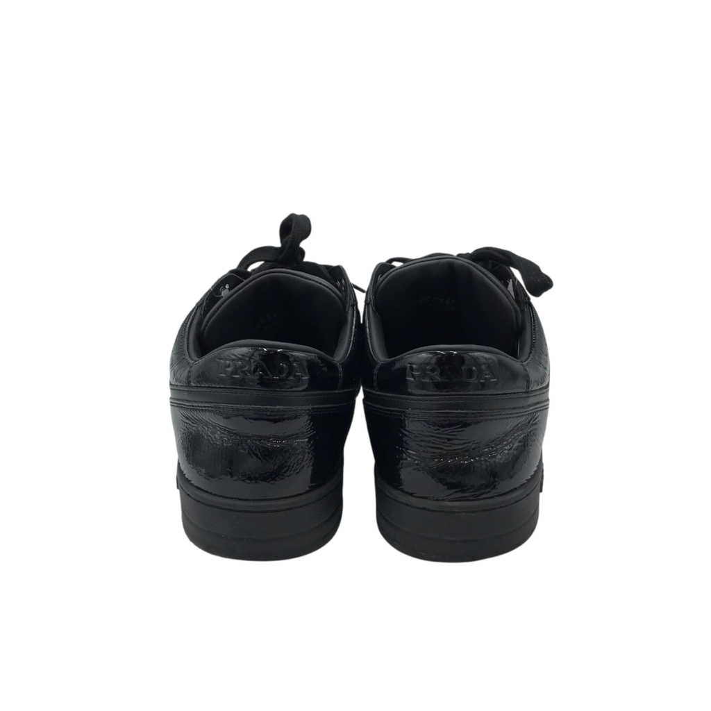 PRADA "DOWNTOWN" LOGO LEATHER SNEAKERS MEN SHOE BLACK 10
