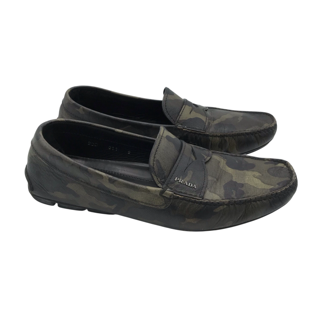 PRADA SAFFIANO CAMO LOAFERS MEN SHOE GREEN 9DD