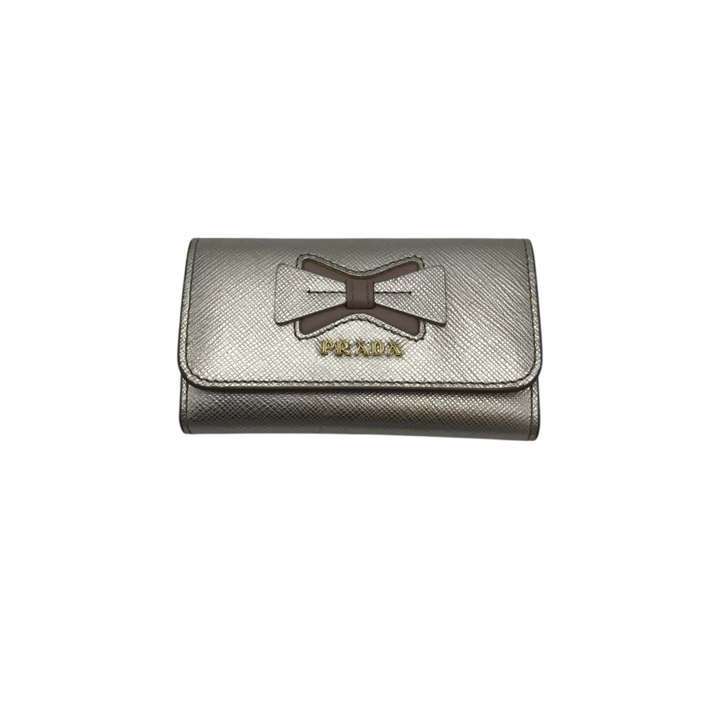 PRADA SAFFIANO LEATHER BOW KEY HOLDER LUXE WALLET GOLD